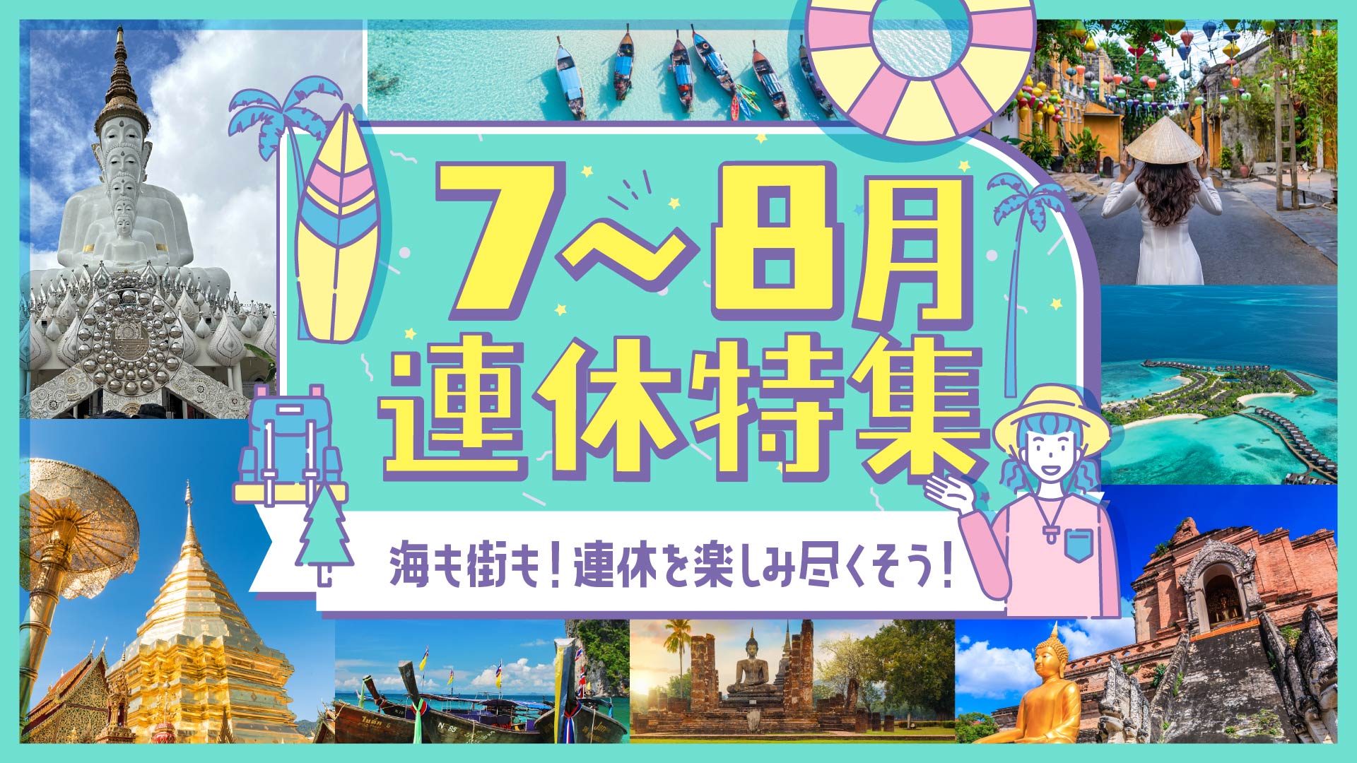青い海と空に癒されるビーチも、グルメと街歩きを楽しむシティも、歴史を学べる遺跡巡りも、連休で楽しんじゃお!