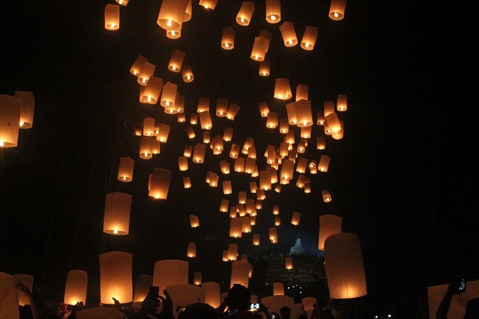 ボロブドゥール寺院内より、スカイランタンを打ち上げている風景を近くで鑑賞する事ができます。