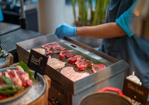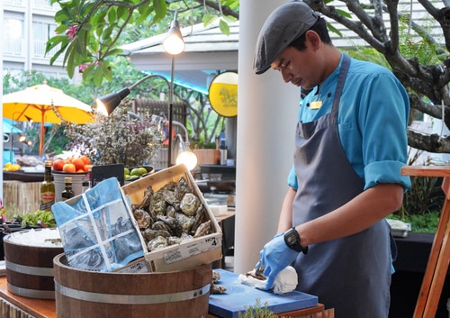 パトン最高峰の美食体験!グランドメルキュール・プーケット・パトンの「バブルス・レストラン」が贈る、最高級のシーフードビュッフェです 氷上に並ぶロックロブスター、フレンチオイスター、手長エビ、そして新鮮なお刺身など! グリルコーナーではフエダイやワタリガニが香ばしく焼き上がります。 さらに、お好みの調理法で仕上げるライブキッチンや、お肉派の方も大満足のオーストラリア産サーロインステーキもご用意。 グルメサラダから自家製ベーカリーなど、贅を尽くした一夜をお楽しみください。