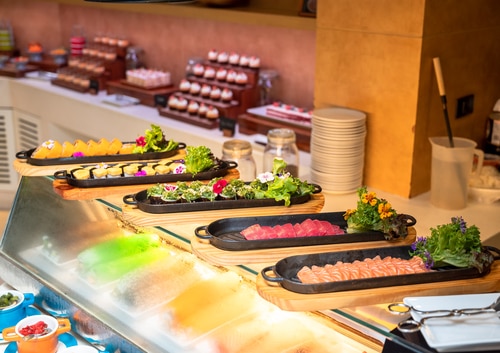 お肉好きにはたまらない、ジューシーでダイナミックな肉料理の数々。 絶妙な火加減で焼き上げたプレミアム・オーストラリア産ビーフを中心に、氷上に並ぶ新鮮なシーフード、本格的なインド料理、そして作りたての寿司・お刺身など。 大切な方々と、心温まるディナータイムをお過ごしください。