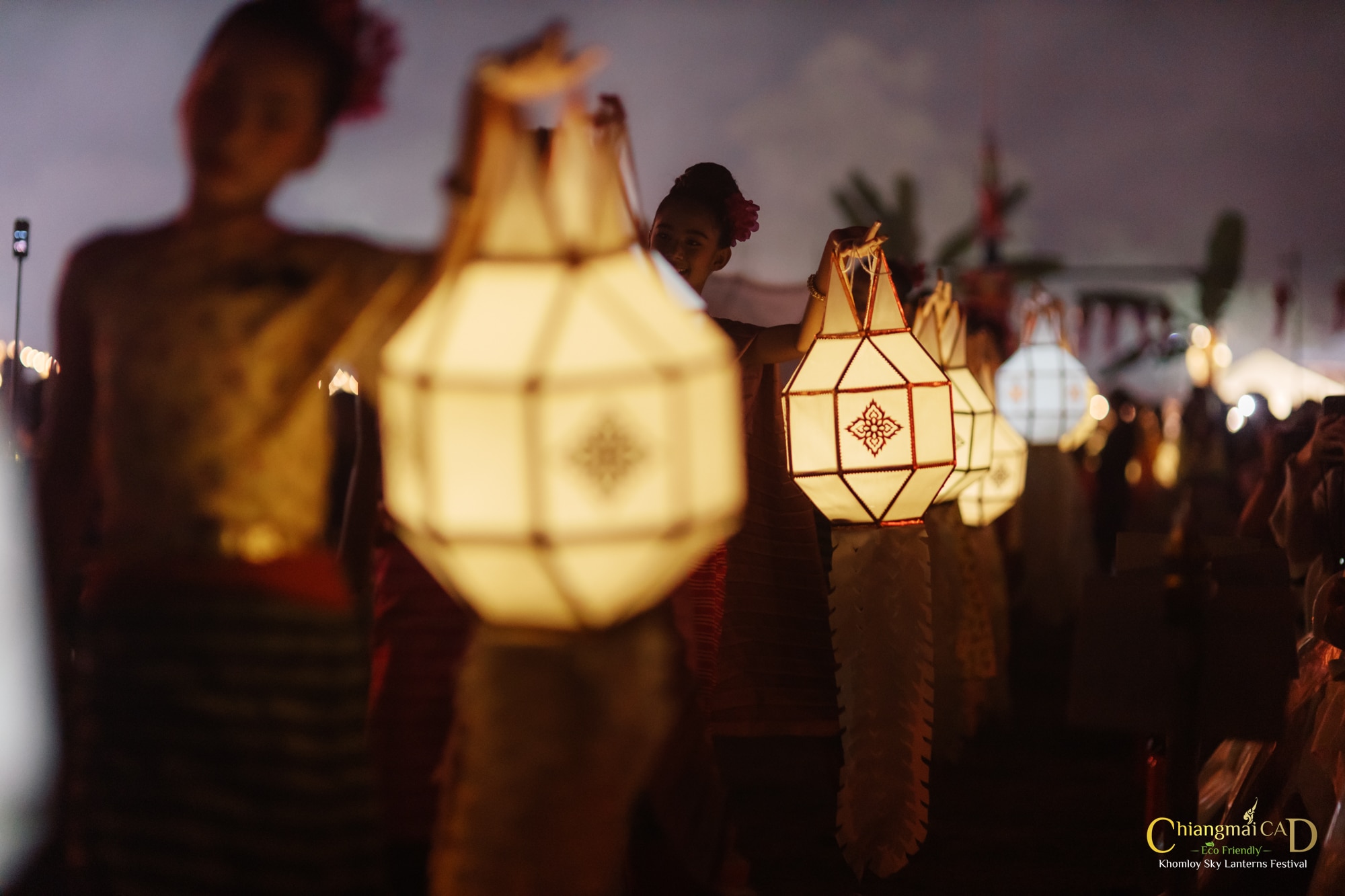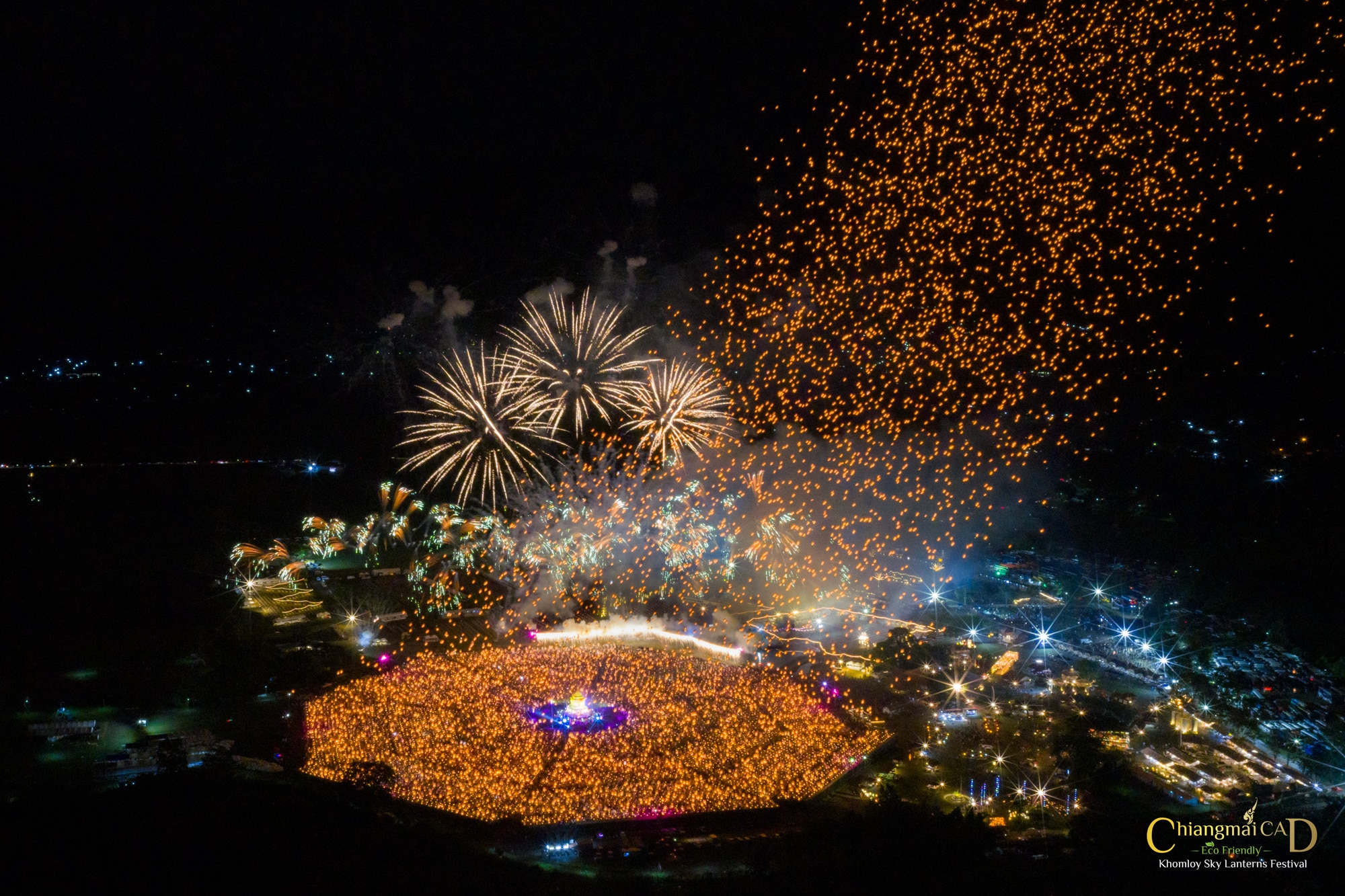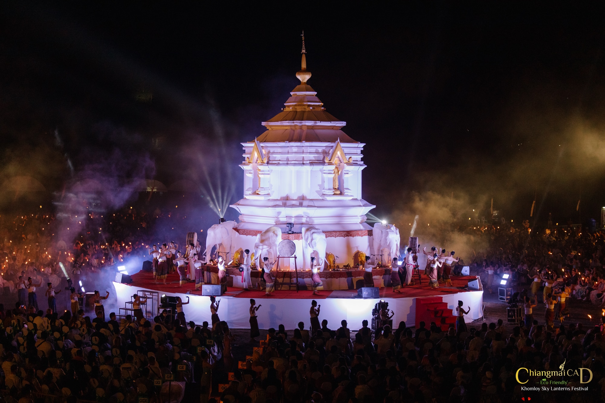 大感動!神秘的なコムローイ(コム=熱気球、ローイ=打ち上げるの意、熱気球を空に放つ北部タイの伝統儀式)も体験できます。CAD主催の国際色豊かなイベント!最大19,000人規模のイベントとなります。